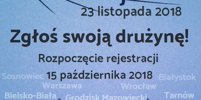 Zapraszamy do udziału w VII edycji międzynarodowego konkursu Náboj Junior, który już po raz drugi będzie miał miejsce w Polsce. Zawody odbędą się 23 listopada 2018 roku. Rejestracja rozpoczęła się dnia 15 października. Zawody w tym roku będą odbywały się w następujących miastach: Białystok, Bielsko-Biała, Grodzisk Mazowiecki, Kraków, Krosno, Łódź, Sosnowiec, Tarnów (III LO), Warszawa, Wrocław.