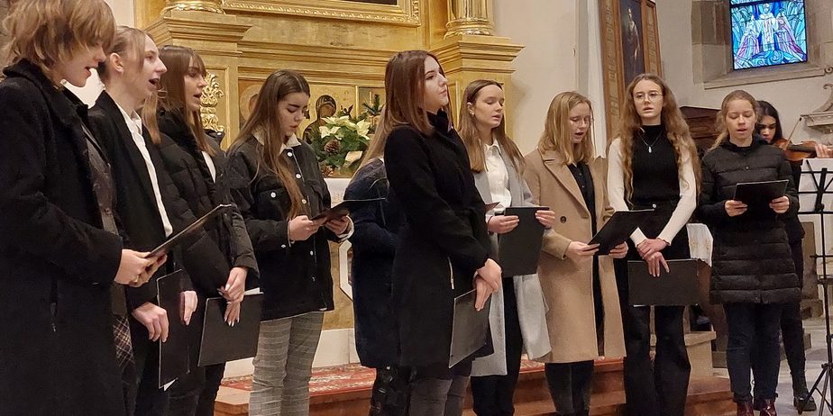 Posługę liturgiczną podczas nabożeństwa sprawowało liczne grono lektorów, a także szkolny chór pod batutą pani Anety Łabno, który na zakończenie modlitewnego spotkania wykonał piękny koncert kolęd.