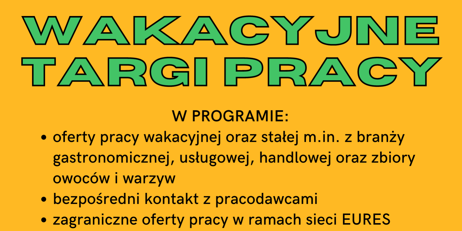 Założeniem targów jest pomoc młodym ludziom w podjęciu pracy w okresie wakacji oraz zdobyciu doświadczenia. Przy stoiskach młodzież będzie miała możliwość uzyskania informacji na temat pracy krótkoterminowej i stałej, prezentowanej przez przedstawicieli firm oraz pośredników z Młodzieżowego Biura Pracy. Ponadto prezentowana będzie sieć EURES, która oferuje zatrudnienie w krajach Unii Europejskiej.