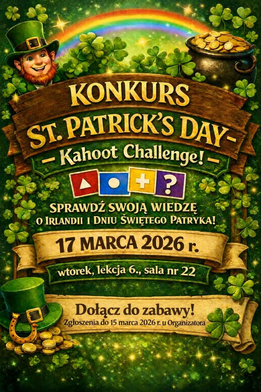 Plakat na stronę szkoły St. Patrick’s Day — Kahoot Challenge