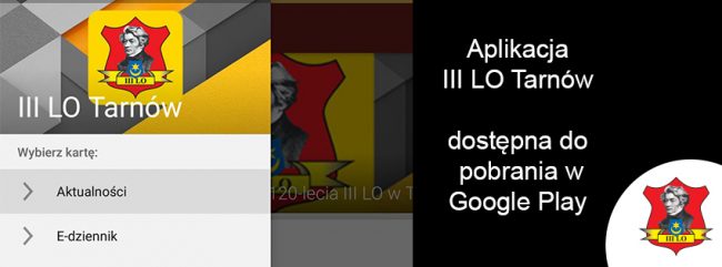 Zapraszamy do pobrania aplikacji III LO Tarnów, która jest obecnie dostępna na telefony z systemem Android. Aplikacja umożliwia sprawdzenie aktualności na stronie internetowej, zastępstwa na dany dzień, dostęp do e-dziennika i planu lekcyjnego. Dodatkowo dodany jest moduł video oraz Facebooka. Program będzie stale rozwijany, będą również dostępne nowe funkcje. Aplikację można pobrać ze sklepu Google…
